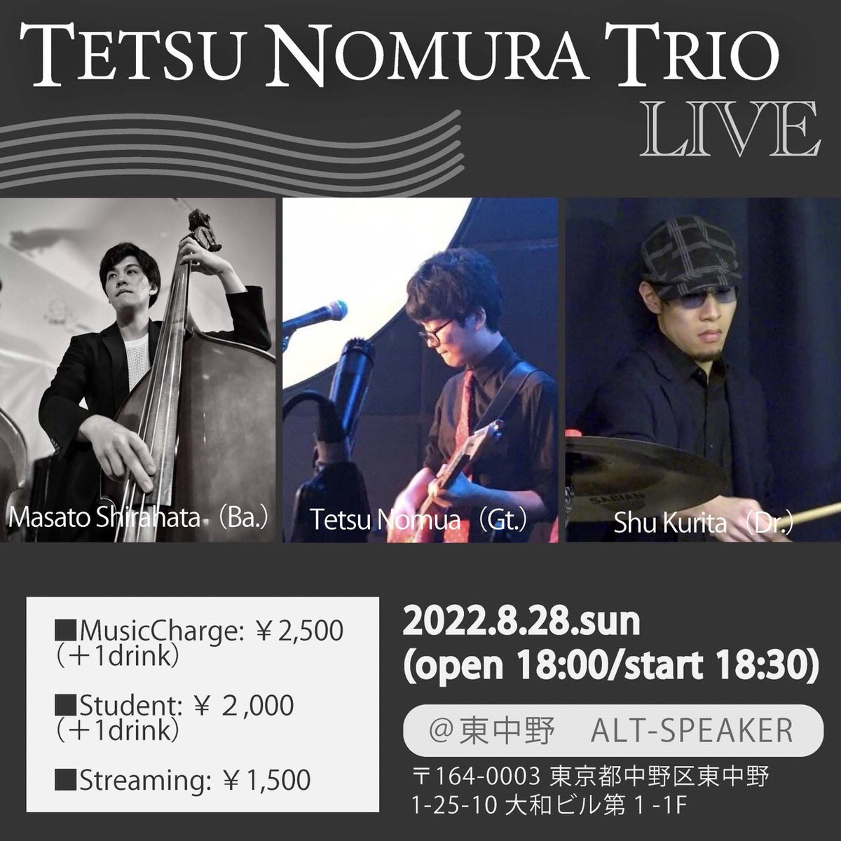 【宣伝‼︎】8月28日(日)夜は▶︎-【Tetsu Nomura Trio Live】-