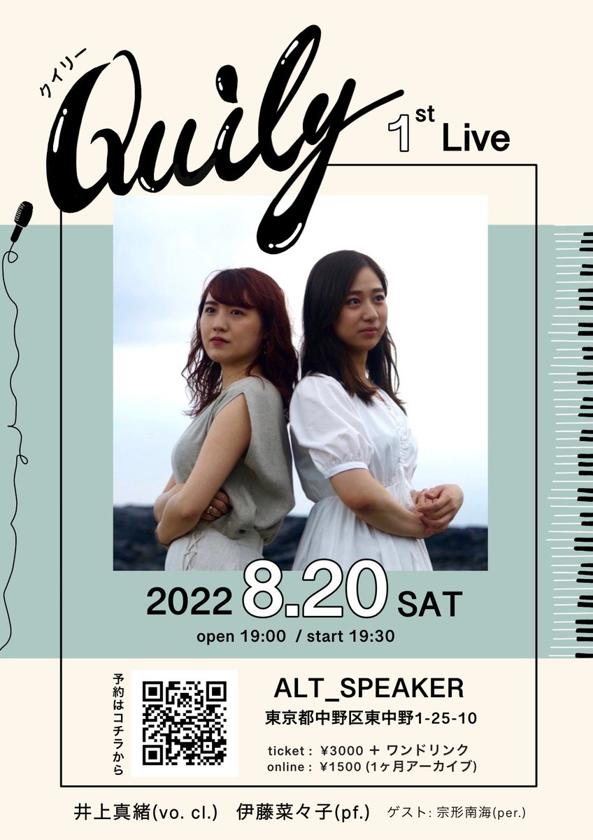 8月20日(土)夜は▶︎-【『Quily 1st live』】-