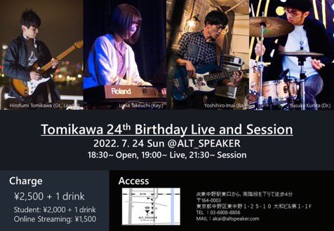 【宣伝‼︎】当店でセッションの主催を続けて下さっている富川氏のバースデーライブアンドセッションイベントです😌穏やかで心優しい富川氏の主力のメンバーでのお届けのライブ🎶今からとても楽しみです✨セッションも開催いたしますので、皆様楽器を持ち寄ってのご参加希望いたします🥺 https://t.co/aGmi1yN5Bm